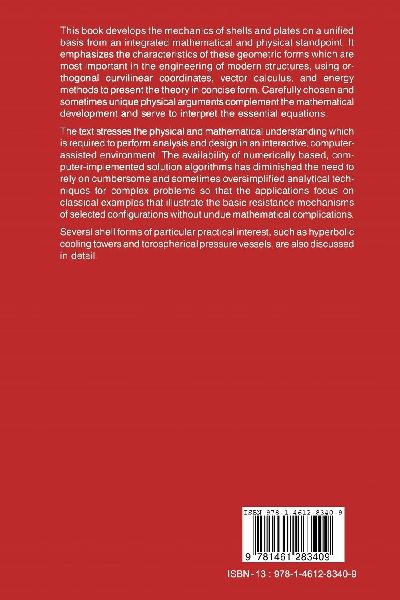 The study ofthree-dimensional continua has been a traditional part of graduate education in solid mechanics for some time. With rational simplifications to the three-dimensional theory of elasticity, the engineering theories of medium-thin plates and of thin shells may be derived and applied to a large class of engi neering structures distinguished by a characteristically small dimension in one direction. Often, these theories are developed somewhat independently due to their distinctive geometrical and load-resistance characteristics. On the other hand, the two systems share a common basis and might be unified under the classification of Surface Structures after the German term Fliichentragwerke. This common basis is fully exploited in this book. A substantial portion of many traditional approaches to this subject has been devoted to constructing classical and approximate solutions to the governing equations of the system in order to proceed with applications. Within the context of analytical, as opposed to numerical, approaches, the limited general ity of many such solutions has been a formidable obstacle to applications involving complex geometry, material properties, and/or loading. It is now relatively routine to obtain computer-based solutions to quite complicated situations. However, the choice of the proper problem to solve through the selection of the mathematical model remains a human rather than a machine task and requires a basis in the theory of the subject. (lib)