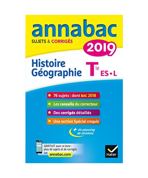 Annales Annabac 2019 Histoire-Géographie Tle L, ES: sujets et corrigés du bac Terminale L, ES