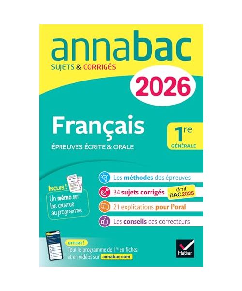 Annales du bac 2026 - Annabac Français 1re générale (bac de français écrit & oral): sujets corrigés sur les oeuvres au programme 2025-2026