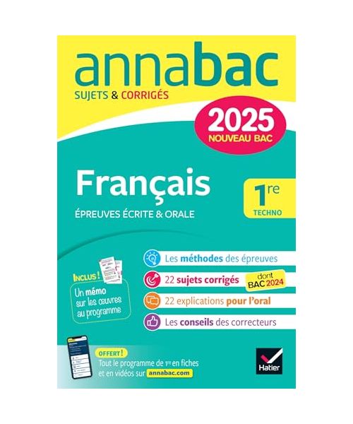 Annales du bac Annabac 2025 Français 1re technologique (bac de français écrit & oral): sujets corrigés sur les oeuvres au programme 2024-2025