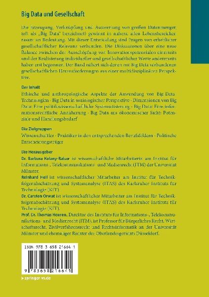 Die Erzeugung, Verknüpfung und Auswertung von großen Datenmengen (oft als ¿Big Datä bezeichnet) gewinnt in nahezu allen Lebensbereichen rasant an Bedeutung. Mit dieser Entwicklung sind Fragen von erheblicher gesellschaftlicher Relevanz verbunden. Die Diskussionen über eine neue Balance zwischen der Ausschöpfung von Innovationspotentialen einerseits und der Realisierung individueller und gesellschaftlicher Werte andererseits haben erst begonnen. Der Band nähert sich denen mit Big Data verbundenen gesellschaftlichen Herausforderungen aus einer multidisziplinären Perspektive. (lib)