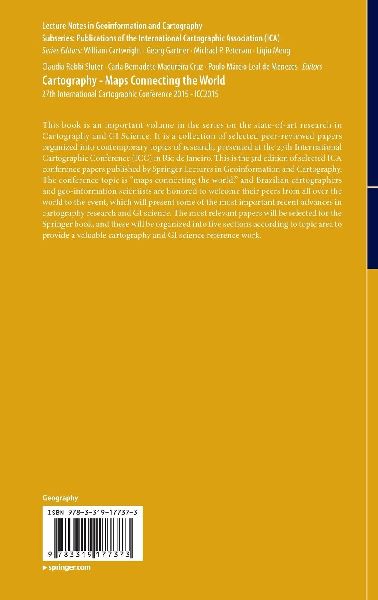 This book is an important volume in the series on the state-of-art research in Cartography and GI Science. It is a collection of selected peer-reviewed papers organized into contemporary topics of research, presented at the 27th International Cartographic Conference (ICC) in Rio de Janeiro. This is the 3rd edition of selected ICA conference papers published by Springer Lectures in Geoinformation and Cartography. The conference topic is ¿maps connecting the world,¿ and Brazilian cartographers and geo-information scientists are honored to welcome their peers from all over the world to the event, which will present some of the most important recent advances in cartography research and GI science. The most relevant papers will be selected for the Springer book and these will be organized into five sections according to topic area to provide a valuable cartography and GI science reference work