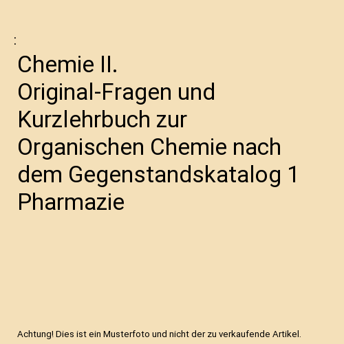 Produktinformationen "Chemie II. Original-Fragen und Kurzlehrbuch zur Organischen Chemie nach dem Gegenstandskatalog 1 Pharmazie"