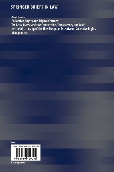 This book starts with an exercise, proposing a theoretical reflection on the technological path that, over time, has transformed the ways we produce, consume and manage intellectual content subject to copyright protection. This lays the groundwork for a further analysis of the main legal aspects of the new European Directive, its improvements, its tendencies and its points of controversy, with special and more concrete attention to how it proposes to address the issues of competition, transparency and multi-territorial licensing. Digital technologies, networks and communication have boosted the production and distribution of intellectual content. These activities are based on a renewable and infinite resource ¿ creativity ¿ which turns this content into strategic artistic, cultural, social, economic and informational assets. Managing the rights and obligations that emerge in this system has never been an easy task; managing them collectively, which is more often than not the case, adds even more complexity. The European Directive on collective management of copyright and related rights and multi-territorial licensing of rights in musical works for online use in the internal market is a policy initiative that seeks to establish an adequate legal framework for the collective management of authors¿ rights in a digital environment, recognizing this goal as crucial to achieving a fully integrated Single Market. Part of the Digital Agenda for Europe, it is an effort to promote simplification and to enhance the efficiency of collective rights management by tackling three of the main issues that are currently undermining the business model of collecting societies: competition, transparency and multi-territorial licensing. The book is intended to support students, academics and practitioners by enhancing their general and legal grasp of these phenomena, while alsoencouraging their collaboration with policymakers and other interested parties in the ongoing task of transposing the Directive into concrete national legislation.