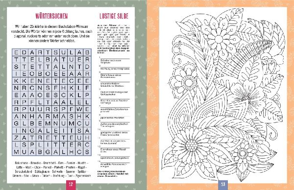 Und wenn du einmal ganz ohne Knobelei entspannen willst, findest du einige Ausmalbilder im Buch, die du ganz nach Lust und Laune farbig gestalten kannst. Oder du veranstaltest einen lustigen Spieleabend mit deinen Lieben. Für vier spannende Spieleklassiker, von Stadt-Land-Fluss bis Vier gewinnt, findest du am Ende des Buches die passenden Spielvorlagen-Blätter und Anleitungen. Spannung, Spaß und gute Laune sind in deinem Urlaub garantiert!