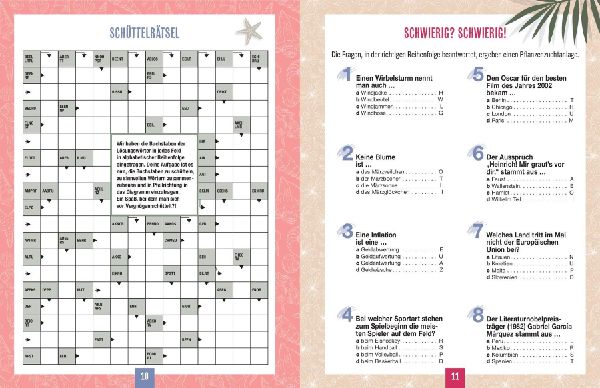 ¿ Sonniger Urlaubslook: Viel gute Laune dank fröhlich-bunter Gestaltung der Rätselseiten