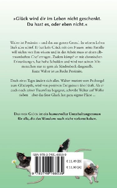 Walter ist Pessimist - und das aus gutem Grund. In seinem Leben läuft alles schief. Er hat kein Glück mit den Frauen, seine Familie will nichts von ihm wissen und in der Arbeit muss er einen albtraumhaften Chef ertragen. Zudem kämpft er mit chronischen Erkrankungen, hat hohe Schulden und wird von seinen Mitmenschen nur zu gern als Sündenbock dargestellt. Kurz: Walter ist zu Recht Pessimist.Doch eines Tages ändert sich alles. Walter mutiert vom Pechvogel zum Glückspilz, wird von positiven Entwicklungen überhäuft. Als er auch noch seiner Traumfrau begegnet, schwebt Walter auf Wolke sieben - aber das fiese Glück hat ganz eigene Pläne ...DAS FIESE GLÜCK ist ein humorvoller Unterhaltungsroman für alle, die das Wundern noch nicht verlernt haben. (lib)