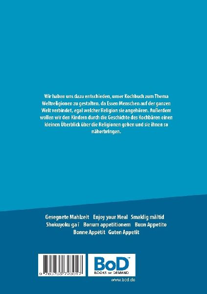 Wir haben uns dazu entschieden, unser Kochbuch zum Thema Weltreligionen zu gestalten, da Essen Menschen auf der ganzen Welt verbindet, egal welcher Religion sie angehören. Außerdem wollen wir den Kindern durch die Geschichte des Kochbären einen kleinen Überblick über die Religionen geben und sie ihnen so näherbringen. (lib)