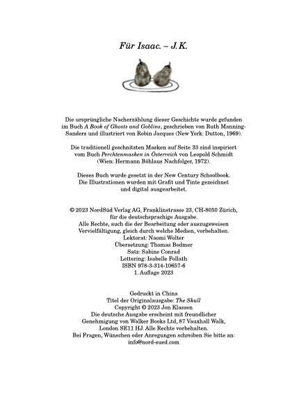 Otilla findet tief im Wald ein altes Haus, in dem ein Totenkopf wohnt. Sie freundet sich mit ihm an und darf dort übernachten. Der Totenkopf aber warnt das Mädchen: Jede Nacht sucht ihn ein kopfloses Gerippe heim. Es möchte ihn einfangen, um endlich sterben zu können. Otilla schmiedet einen Plan, wie sie das Gerippe loswerden können - ein für alle Mal. Für sein neues Buch hat sich Jon Klassen von einem Tiroler Volksmärchen inspirieren lassen. Seine Version der gruseligen Geschichte zeichnet sich durch trockenen Humor und reduzierte, aber tiefgründige Illustrationen aus. Niemand haucht einem Totenschädel so viel Leben ein wie Jon Klassen.
