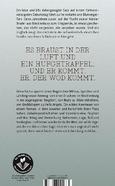 Ein leise und bös dahergesagter Satz auf einer Feier zum Fünfundsiebzigsten führt zu Herzinfarkt und Blutvergießen. Denn Jahrzehnte zuvor, auf der Flucht zweier kleiner Brüder aus Mecklenburg zu Kriegsende, ist etwas geschehen, das nicht vergessen, nie vergeben wurde. Und ein Unglück zeugt das nächste in der schweizerisch-deutschen Familie, um deren Geschichte es hier geht. Der Roman spannt einen Bogen über Epochen und Ländergrenzen hinweg, erzählt vielstimmig und mit regionalen und historischen Sprachfärbungen viel Welt: von einer Druckerei in Mecklenburg, der Uhrenmanufaktur in der Schweiz, von Geheimgesellschaften und Künstlerkreisen, Nazis und Widerständlern, Großbürgern und Hell's Angels, Feigheit und Mut, Krieg und Vertreibung, Geheimnisse, Lügen, Tod und Neubeginn,. Und immer wieder ist da der titelgebende Wod, der wilde Jäger aus der norddeutschen Sage, über den man ungestraft nicht spottet, denn sonst lässt er einen ein Leben lang nicht los ... (lib)