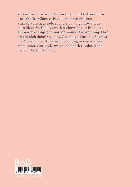 Zirkuslöwe Oscar leidet am Burnout. Da kommt die unverhoffte Chance, in die ersehnte Freiheit auszubrechen, gerade recht. Der junge Löwe lernt, dass diese Freiheit zuweilen einen hohen Preis hat. Unbeirrbar folgt er dennoch seiner Bestimmung. Und macht sich dabei so seine Gedanken über die Spezies der Zweibeiner. Kuriose Begegnungen würzen sein Abenteuer. Am Ende wartet seiner der Lohn einer großen Freundschaft... (lib)