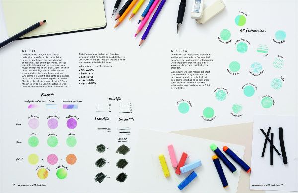 - Übersicht über verschiedene Zeichenarten und -materialien sowie geeignete Themen
