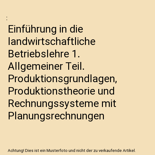 Produktinformationen "Einführung in die landwirtschaftliche Betriebslehre 1. Allgemeiner Teil. Produktionsgrundlagen, Produktionstheorie und Rechnungssysteme mit Planungsrechnungen"
