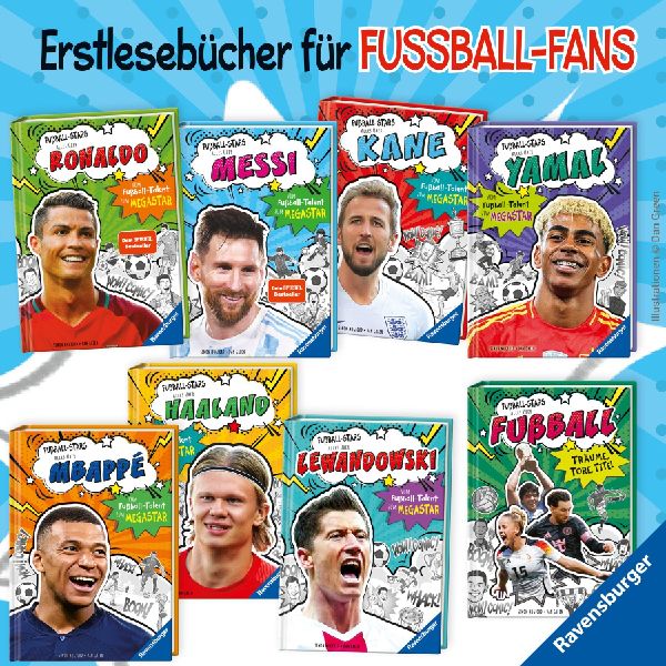 Für weiteren Lesespaß in dieser Reihe sorgen bisher die Bücher über Ronaldo, Mbappé, Haaland, Kane und Lewandowski.