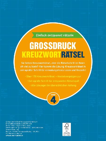 Genießen Sie stundenlangen Rätselspaß mit unserem Kreuzworträtselbuch in großer Schrift. Die Kreuzworträtsel sind speziell für eine gute Lesbarkeit gestaltet und bieten so ein ermüdungsfreies Knobelvergnügen für Augen und Geist. Abwechslungsreich, kurzweilig und knifflig ist unser Kreuzworträtselbuch das ideale Geschenk für Menschen, die ihre geistige Fitness und Konzentration verbessern möchten. Bestellen Sie jetzt unser Kreuzworträtselbuch in großer Schrift und genießen Sie ganz entspannten Rätselspaß!