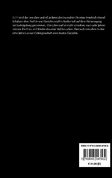 Christian Friedrich Daniel Schubart: Leben und Gesinnungen. Von ihm selbst im Kerker aufgesetzt Erstdruck des ersten Teils: Stuttgart (Mäntler) 1791; Erstdruck des zweiten Teils: Stuttgart (Mäntler) 1793. Vollständige Neuausgabe mit einer Biographie des Autors. Herausgegeben von Karl-Maria Guth. Berlin 2014. Textgrundlage sind die Ausgaben: Christian Friedrich Daniel Schubart: Schubart¿s Leben und Gesinnungen. Von ihm selbst, im Kerker aufgesetzt, Erster Theil, Stuttgart: Mäntler, 1791 [Nachdruck, mit einem Nachwort von Claus Träger, Leipzig: VEB Deutscher Verlag für Musik, 1980]. Schubart, Christian Friedrich Daniel: Schubart¿s Leben und Gesinnungen. Von ihm selbst, im Kerker aufgesetzt, Zweiter Theil, Herausgegeben von seinem Sohne Ludwig Schubart, Stuttgart: Mäntler, 1793 (Nachdruck, mit einem Nachwort von Claus Träger, Leipzig: VEB Deutscher Verlag für Musik, 1980). Die Paginierung obiger Ausgaben wird in dieser Neuausgabe als Marginalie zeilengenau mitgeführt. Umschlaggestaltung von Thomas Schultz-Overhage unter Verwendung des Bildes: August Friedrich Oelenhainz, Bildnis Christian Friedrich Daniel Schubart. Gesetzt aus Minion Pro, 11 pt. Über den Autor: 1777 wird der populäre und oft polemische Journalist Christian Friedrich Daniel Schubart ohne Verhör und Gerichtsurteil in Kerkerhaft auf dem Hohenasperg bei Ludwigsburg genommen. Vier Jahre darf er nicht schreiben, nach acht Jahren können ihn Frau und Kinder das erste Mal besuchen. Dennoch entstehen in den zehn Jahren seiner Gefangenschaft seine besten Gedichte. (lib)