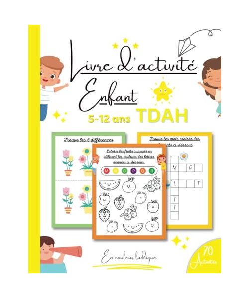 Livre d'activité enfant TDAH: Cahier d'activité tout en couleur avec 70 jeux ludique pour améliorer la concentration et l'observation pour les enfants hyperactifs