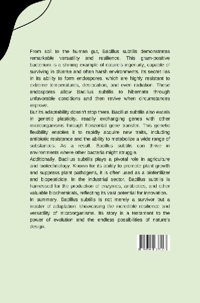 This book likely explores the bacterium Bacillus subtilis, a microorganism known for its remarkable ability to adapt and survive in diverse environments. The title "Master of Adaptation" suggests the book delves into the mechanisms Bacillus subtilis uses to thrive everywhere, from extreme temperatures to harsh chemicals. It might explore its unique genetic makeup, its ability to form protective spores, or its efficient use of resources. The book could be aimed at scientists studying bacterial adaptation or at a general audience interested in the wonders of the microbial world (lib)