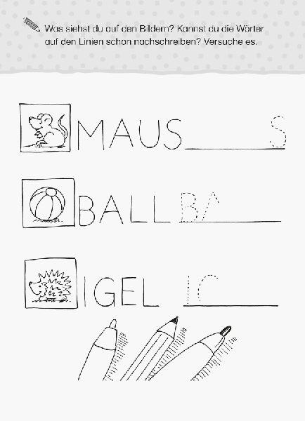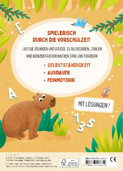 Spannende Buchstabenrätsel, Labyrinthe, kleine Spiele sowie Schreib- und Leseübungen bereiten auf die Einschulung vor. Mit lustigen Tierillustrationen üben Kinder genaues Schauen, Vergleichen und Konzentration. Beim Abzählen der Spielzeuge des kleinen Bären erkennen und schreiben sie Zahlen, mit Igel und Maus lernen sie erste Buchstaben kennen. Spielerisch werden so Fähigkeiten für die Vorschule und Grundlagen zu ersten Schulthemen wie das Lesen, Rechnen und Schreiben vermittelt.