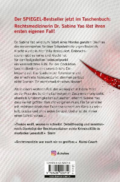 Der große SPIEGEL-Bestseller jetzt im Taschenbuch: Rechtsmedizinerin Dr. Sabine Yao löst ihren ersten eigenen Fall! Mutig, clever & hautnah an der Realität - der erste Teil von Michael Tsokos' neuer True-Crime-Thriller-Reihe. Die Ehefrau des renommierten Schönheitschirurgen Roderich Kracht wurde in ihrer Villa in einem exklusiven Berliner Wohnort stranguliert. Da Roderich Kracht ein einflussreicher Mann ist, mit vielen prominenten Freunden, die für sich, ihre Frauen oder Geliebten seine Dienste diskret in Anspruch genommen haben, zieht der Fall schnell Kreise in die Höhen von Politik und Justiz. Den ermittelnden Behörden darf kein Fehler unterlaufen, erste Ergebnisse werden von höchster Instanz erwartet. Unter Hochdruck arbeiten die Ermittler und Rechtsmediziner am Tatort. Zusammen mit ihrem Kollegen Jörgensen aus dem Landesinstitut untersucht die deutsch-chinesische Rechtsmedizinerin die tote Ehefrau. Tötungsart und Todeszeitpunkt sind schnell bestimmt. Und damit scheidet Roderich Kracht sofort als Täter aus, er hat für die Todeszeit seiner Frau ein wasserdichtes Alibi. Aber es tauchen Unstimmigkeiten auf, denn das Stadium der Totenstarre des Opfers sorgt für große Irritationen und lässt alle Experten am festgelegten Todeszeitpunkt zweifeln. Ein rechtsmedizinisches Novum: Totenstarre und die errechnete Todeszeit stimmen partout nicht überein. Als in einem weiteren Fall, der möglicherweise mit dem Mord in Zusammenhang steht, ebenfalls Unstimmigkeiten auftreten, erkennt Sabine Yao, dass sie von nun an mit größter Vorsicht vorgehen muss. Offensichtlich ist ein Serienkiller mit rechtsmedizinischer Expertise am Werk, der Yao immer einen Schritt voraus ist. Mit der Unterstützung ihres Chefs und Mentors Prof. Paul Herzfeld und der IT-Spezialistin Sara Wittstock gelingt es Yao schließlich, dem Täter und seinen perfiden Taten immer weiter auf die Spur zu kommen. Doch der Mörder schreckt vor nichts zurück und lockt die Rechtsmedizinerin in eine tödliche Falle ... Raffiniert, präzise & weiblich: Wie auch Michael Tsokos' Reihen um die Rechtsmediziner Paul Herzfeld und Fred Abel beruht » Mit kalter Präzision « auf einem echten Fall. Der True-Crime-Thriller mit dem ersten Fall für die Rechtsmedizinerin Sabine Yao punktet mit Hochspannung und Gänsehaut-Garantie durch authentische Einblicke in die Forensik. »Das Buch ist ein wunderbarer Auftakt einer neuen Rechtsmedizin-Thriller-Reihe. Wie Tsokos durch seine klare und einfache Sprache eine Leiche "zum Sprechen" bringt und ihr ihre tiefsten Geheimnisse entlockt, ohne dass man als Laie abgehängt wird, ist einzigartig.« Krimi-couch.de (lib)