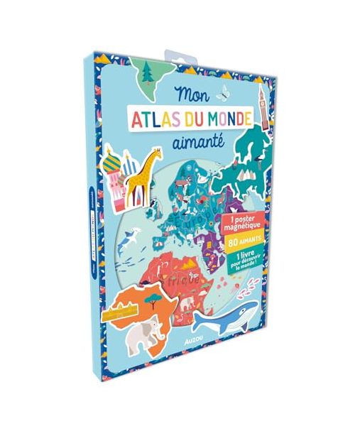 Mon Atlas du monde aimanté: Avec 1 poster magnétique, 80 aimants et 1 livre A la découverte du monde