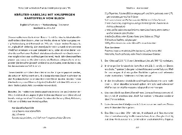 Der Weg zu einer natürlichen ErnährungStark verarbeitete Lebensmittel erhöhen das Risiko für Übergewicht, Adipositas, Bluthochdruck, Typ-2-Diabetes und Herz-Kreislauf-Erkrankungen. Indem du hochverarbeitete Produkte in deiner täglichen Ernährung reduzierst, kannst du dieser Gefahr entgegenwirken und gleichzeitig Beschwerden gezielt lindern. Wie einfach das geht, zeigt die renommierte Ernährungsexpertin Nichola Ludlam-Raine in diesem Buch anhand von neuesten Forschungsergebnissen und alltäglichen Beispielen. In nur 4 Wochen gesünder werdenIhr wissenschaftlich fundiertes 4-Wochen-Programm liefert wertvolles Hintergrundwissen und führt Schritt für Schritt zu einer ausgewogenen Gestaltung der Mahlzeiten - von Snacks über Frühstück bis hin zu Mittag- und Abendessen. Praktische Tipps helfen zudem, die Ernährung durch kleine, leicht umsetzbare Veränderungen im Alltag deutlich zu verbessern. Mit einfachen und leckeren Rezepten und einer umfassenden Liste mit über 100 verarbeiteten Lebensmitteln ist dieser Titel ein Muss für alle, die sich gesünder ernähren und langfristig etwas für ihre Gesundheit tun wollen. (lib)