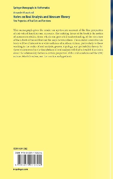 This monograph gives the reader an up-to-date account of the fine properties of real-valued functions and measures. The unifying theme of the book is the notion of nonmeasurability, from which one gets a full understanding of the structure of the subsets of the real line and the maps between them. The material covered in this book will be of interest to a wide audience of mathematicians, particularly to those working in the realm of real analysis, general topology, and probability theory. Set theorists interested in the foundations of real analysis will find a detailed discussion about the relationship between certain properties of the real numbers and the ZFC axioms, Martin's axiom, and the continuum hypothesis. (lib)