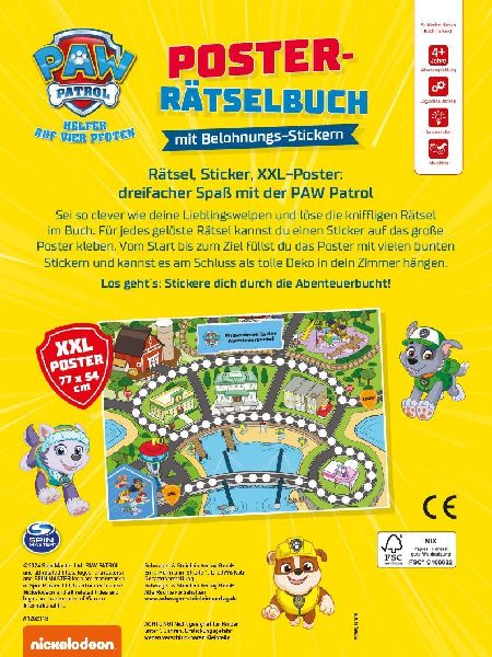 Hier erwartet Kinder ab 4 Jahren dreifacher PAW-Patrol-Spaß mit vielen Rätseln, bunten Stickern und einem XXL-Poster! Und so geht¿s: Knifflige Rätsel im Buch lösen und für jedes gelöste Rätsel einen Sticker auf das große Poster kleben. Vom Start bis zum Ziel wird das Poster mit Stickern gefüllt und kann am Schluss als tolle XXL-Deko ins Kinderzimmer gehängt werden.