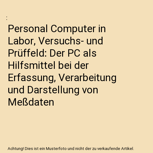 Produktinformationen "Personal Computer in Labor, Versuchs- und Prüffeld: Der PC als Hilfsmittel bei der Erfassung, Verarbeitung und Darstellung von Meßdaten"