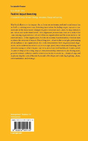 This book illustrates the impact that a focus on environmental and social issues has on both de-risking assets and fostering innovation. Including impact as a new cornerstone of the investment triangle requires investors and clients to align interests and values and understand needs. This alignment process functions as a catalyst for transforming organizational culture within an organization and therefore initiates the external impact of the organization, but also its internal transformation, which in turn escalates the creation of impact. Describing how culture is the social glue permeating all disciplines of an organization, the book demonstrates how organizational alignment can be achieved in order to allow strategic speed, innovation and learning, and provides examples of how impact can be achieved and staff mobilized It particularly focuses on impact investing, impact entrepreneurship, innovation, de-risking asset, green investment solutions and investor movements to counteract climate change and implementing the United Nations Sustainable Development Goals, highlighting culture, communication, and strategy. (lib)
