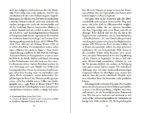 Der russische Staatspräsident Putin und die Handlanger seines verbrecherischen Krieges in der Ukraine sollen strafrechtlich zur Verantwortung gezogen werden. So klar die Forderung ist, so unklar erscheint, wie sie eingelöst werden soll. Vor welchem Gericht sollen sich die mutmaßlichen Täter verantworten? Für welche Verbrechen? Und wann und in welchem Kontext überhaupt? Viele Fragen, die eines gemeinsam haben: Die Herausforderung ist groß und der Ausgang einer solchen strafrechtlichen Verfolgung ungewiss. Denn sie stößt auf eine internationale Strafjustiz, die sich heftiger Kritik an ihrer Legitimation ausgesetzt sieht: Mächtige Staaten und deren Freunde hätten nichts zu befürchten, unparteiisch sei sie auch nicht, Opfer würden vernachlässigt, lauten einige der Vorwürfe.Was wäre von Strafverfahren gegen Putin und Co. tatsächlich zu erwarten? Mit welcher Botschaft an andere Völkerrechtsverbrecher? (lib)