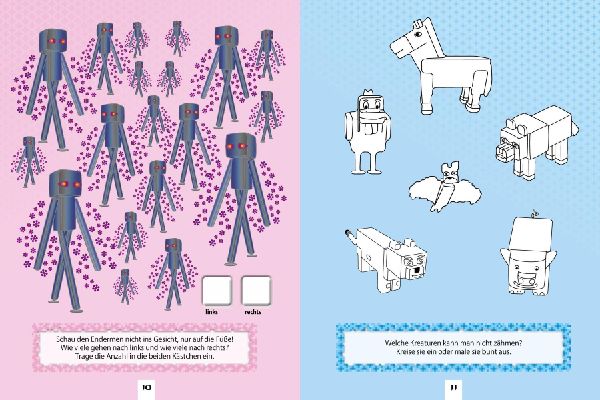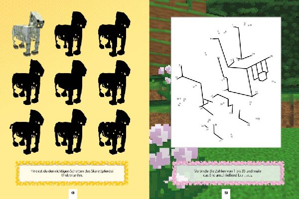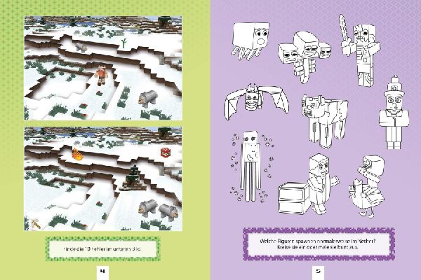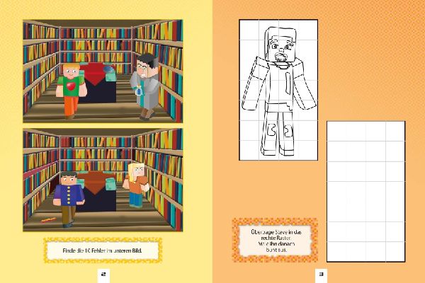 Versetze dich in die Rolle eines mutigen Helden oder einer tapferen Heldin und löse viele abwechslungsreiche und knifflige Aufgaben. Auf 80 durchgehend farbigen Seiten erforschst du die unendlichen Möglichkeiten von Oberwelt, Nether und Ender und findest jede Menge spannende Rätsel rund um Steve, Alex und andere Kreaturen aus der Minecraft-Welt. Verschlungene Labyrinthe durch den Nether, Bilderrätsel mit Zombies, Quizfragen für echte Experten, Zeichenübungen und viele weitere spannende Aufgaben bieten ultimative Minecraft-Action.