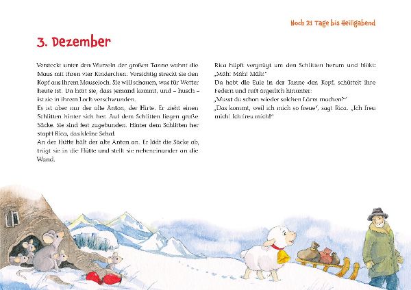 . Eine Geschichte für Kleinkinder: In diesem Weihnachtskalender wird eine neue Geschichte von dem beliebten Schäfchen Rica in 24 Kapiteln erzählt.