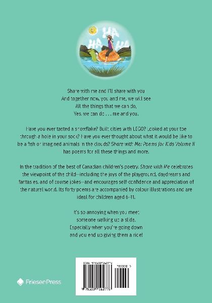 Share with me and I'll share with youAnd together now, you and me, we will seeAll the things that we can do,Yes, we can do . . . me and you.Have you ever tasted a snowflake? Built cities with LEGO? Looked at your toe through a hole in your sock? Have you ever thought about what it would be like to be a fish or imagined animals in the clouds? Share with Me: Poems for Kids Volume II has poems for all these things and more. In the tradition of the best of Canadian children's poetry, Share with Me celebrates the viewpoint of the child-including the joys of the playground, daydreams and fantasies, and of course jokes-and encourages self-confidence and appreciation of the natural world. Its forty poems are accompanied by colour illustrations and are ideal for children aged 6-11.It's so annoying when you meetsomeone walking up a slide.Especially when you're going downand you end up giving them a ride! (lib)