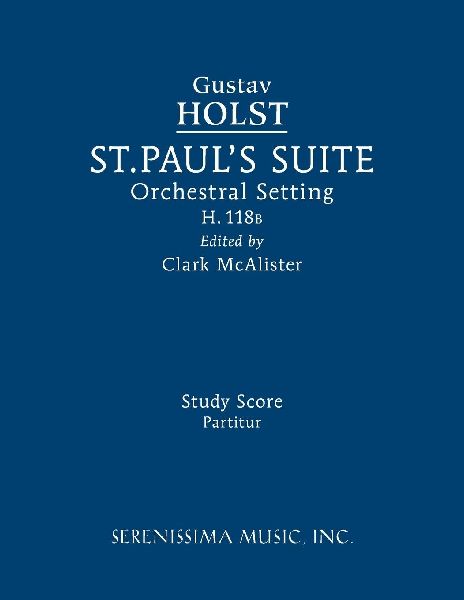 Holst's popular suite was named for the St. Paul's Girls' School of Hammersmith, London - where he was the music director from 1904 until his death thirty years later. Composed in 1912 as a token of gratitude for the installation of a sound-proof teaching studio, where Holst composed this and nearly all subsequent works. The four movement suite was also premiered at St. Paul's by the school orchestra under Holst's direction in the winter months of 1913. Not long after the premiere, the school purchased wind instruments, resulting in the addition of parts for flutes, oboe, clarinets and horn to the original string orchestra setting. The premiere date of this amended setting is unknown but the extra parts seem to have been added by 1920. Clark McAlister's new edition the setting with winds is based on the composer's manuscript, which differs in several respects from the string orchestra setting published in 1922. McAlister's score was first issued in 2006 by the now-defunct publisher E.F. Kalmus. Serenissima is proud to make this outstanding work available and is now the exclusive publisher for not only the study score offered here but the large score and orchestra parts. (lib)