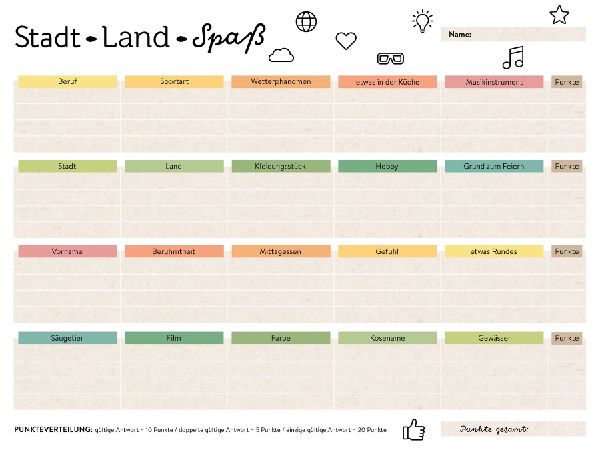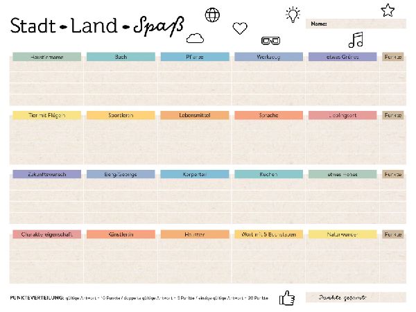 Stadt-Land-Spaß . 40 Kategorien für kniffligen Spielspaß