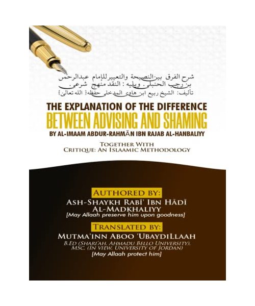 The Explanation Of The Difference Between Advising And Shaming by Al-Imaam Abdur-Rahmān Ibn Rajab Al-Hanbaliyy: Together With Critique : An Islaamic Methodology