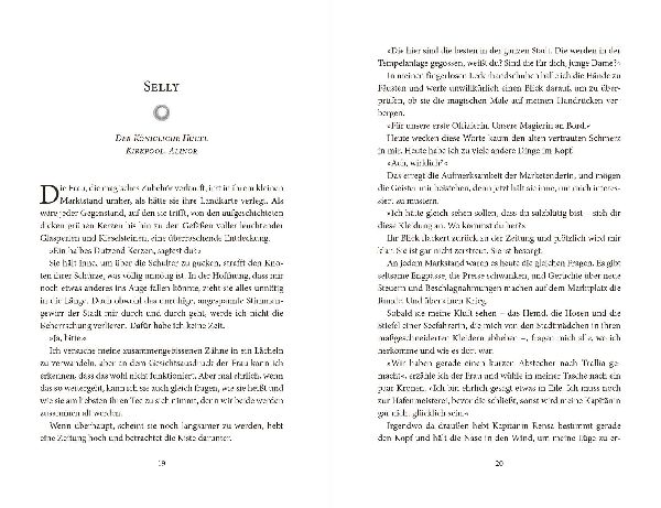 Selly ist nur ein Schiffsmädchen auf der Kleinen Lizabetta , aber sie träumt davon, eines Tages selbst Kapitänin zu sein. Da betritt ein Fremder das Schiff, und mitten in der Nacht setzen sie heimlich die Segel. Der Fremde ist Prinz Leander von Alinor, der mächtigste und leider auch der attraktivste Magier des Reiches. Ausgerechnet er soll die Götter besänftigen und einen drohenden Krieg verhindern? Ehe sie sich's versieht, wird Selly zur Anführerin einer lebensgefährlichen Mission, und notgedrungen kommen Leander und Selly sich näher ...