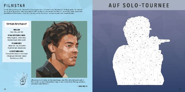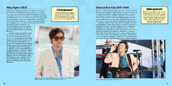 Erfahre im vorderen Buchteil spannende Fakten zur vielfältigen Karriere von Harry Styles, von den Anfängen bei The X-Factor und One Direction bis hin zu seinen Erfolgen als Solo-Künstler, Mode-Ikone und Schauspieler.