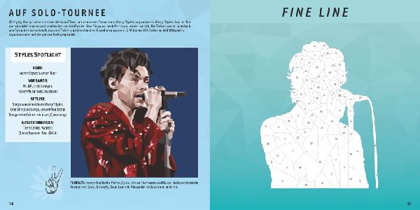 ¿Originelles Sticker-Buch für alle Harry-Styles-Fans: Mit 12 Mosaik-Stickerbildern zum Selbstgestalten sowie vielen spannenden biografischen Fakten und Fan-Trivia zu Harry Styles. 100% inoffizielle Tribute Edition ¿ Einzigartig: 100% inoffizielle Tribute Edition¿ Kreativ: 12 atemberaubende Mosaik-Stickerbilder von Harry Styles bei Konzerten mit One Direction, als Solo-Künstler, als Mode-Ikone & Filmstar¿ Informativ: Spannende Fakten zu seinen Konzerten & Filmen und ganz viel Fan-Trivia (Alben, Songs, Filme, Auszeichnungen, …) zu jedem Stickerbild¿ Hochwertig produziert: Extradicke Buchseiten, die sich dank Perforation ganz einfach heraustrennen lassen¿ Tolle Geschenkidee: Für Harries jeden Alters, die ihr Lieblingsporträt im exklusiven Mosaik-Stil selbst gestalten wollen Wir lieben Harry Styles!Feiere mit dieser 100% inoffiziellen Tribute Edition die einzigartige Karriere von Harry Styles und kreiere dein ganz besonderes Harry-Styles-Porträt! Das inoffizielle Mosaik-Stickerbuch zu dem phänomenalen Künstler lädt dich dazu ein, dir unter 12 Bildvorlagen dein Lieblingsporträt auszusuchen und im exklusiven Mosaik-Stil selbst zu gestalten. Füge jedes Bild wie bei einem Mosaik aus bis zu 90 geometrischen Aufklebern zusammen. Dank der Perforation kannst du dein so geschaffenes Kunstwerk heraustrennen, einrahmen, aufhängen oder anderen Harries schenken.Erfahre im vorderen Buchteil spannende Fakten zur vielfältigen Karriere von Harry Styles, von den Anfängen bei The X-Factor und One Direction bis hin zu seinen Erfolgen als Solo-Künstler, Mode-Ikone und Schauspieler.Wie wurde er Mitglied bei One Direction? Wer sind seine Vorbilder? Wie begann seine Solo-Karriere? Wie wurde er zum Filmstar? Was inspirierte ihn dazu seine eigene Mode- und Kosmetik-Marke zu entwickeln? Dies und vieles mehr findest du in der bebilderten Biografie in diesem Buch. Dazu findest du bei jeder Stickerbild-Vorlage alles Wissenswerte rund um diesen Harry-Styles-Moment und Zitate des Künstlers.Ein Muss für alle Harries! (lib)