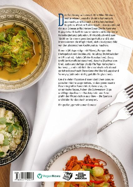 Regionale Kochkultur trägt zur Persönlichkeitsbildung bei und ist zweifelsohne eine der Grundfesten der Gesellschaft. Das kulinarische Angebot eines Landes ist also ein hervorragender Weg, die Menschen dort kennenzulernen. Niko Rittenau, hierzulande die zentrale Koryphäe für vegane Ernährung, wollte wissen, was die Ukraine kulinarisch ausmacht, und hat sich auf Recherchereise begeben. Mit dem Spitzenkoch Lukas Jakobi und seiner aus Odessa geflüchteten Sous-Chefin Kateryna Kuprych hat Niko Rittenau versierte und kompetente Reiseführer:innen gefunden. Ihr Kochbuch wird so auch für uns Leser:innen und Köch:innen zum Türöffner für eine eigenständige Kultur und bietet die Möglichkeit, sich ein eigenes Bild von der ukrainischen Kochkunst zu machen. Dill-Chimichurri, Gurken-Wodka-Sorbet, Holunder-Zitronentee mit Estragon, Beeren-Salat, Sauerkirsch-Birken-Pudding, Sellerie-Schaschlik, Salsa aus Buchweizen, gebrannter Spitzkohl, gebratener Krautsalat, Kartoffelpuffer mit Äpfeln und pflanzlichem Kaviar .... und natürlich Warenki, Borschtsch und Schtischi - die rein pflanzliche ukrainische Küche ist ein einmaliges Geschmackserlebnis. Um alle Facetten dieser osteuropäischen Küche kennenzulernen, ist - wie in der Ukraine selbst - das gemeinsame Essen mit vielen unterschiedlichen Köstlichkeiten, die in großer Runde geteilt werden, ideal. Genau so, quasi als ukrainische Tapas, haben die beiden Schwestern Olga und Evgeniya Drach - Foodstylistin und Fotografin der Photokitchen aus Kiew - die Speisen und Bilder für das Buch arrangiert. So wurde »Vegan Kochen Ukraine« ein sinnschaffendes Gemeinschaftsprojekt, das zudem auch Normalität und Arbeitsperspektive für alle Beteiligten geschaffen hat. Erlöse aus diesem Titel werden gespendet: Die Verlagserlöse werden zugunsten der Ukraine-/Flüchtlingshilfe überweisen. (lib)