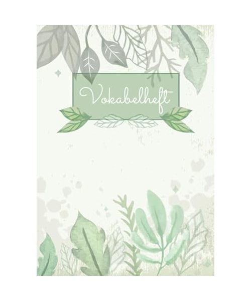 Vokabelheft: 3 Spalten liniert DIN A4 - Schulheft zum Vokabeln lernen - 3 spaltig für verschiedene Sprachen (Englisch, Spanisch, Französisch, Latein, ... uvm.) - Motiv: Grün Aquarell Blätter Natur