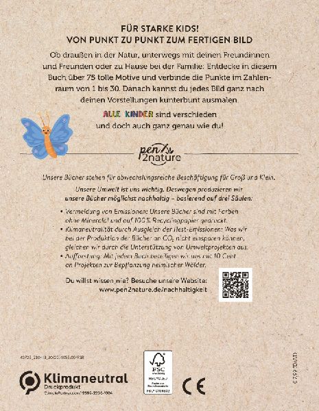 Für mehr Nachhaltigkeit im Alltag: Dieses Buch wurde mit Farben ohne Mineralöl und auf 100 % Recyclingpapier gedruckt. Rest-Emissionen werden durch die Unterstützung von Umweltprojekten ausgeglichen. Zusätzlich beteiligt sich der Verlag pen2nature mit jedem Buch mit 10 Cent an Projekten zur Bepflanzung heimischer Wälder. Wie genau das alles funktioniert? Auf seiner Website informiert der Verlag ausführlich und transparent darüber.