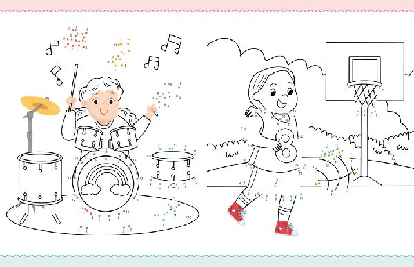 . Über 75 Von-Punkt-zu-Punkt-Bilder aus der kunterbunten Lebenswelt der Kinder