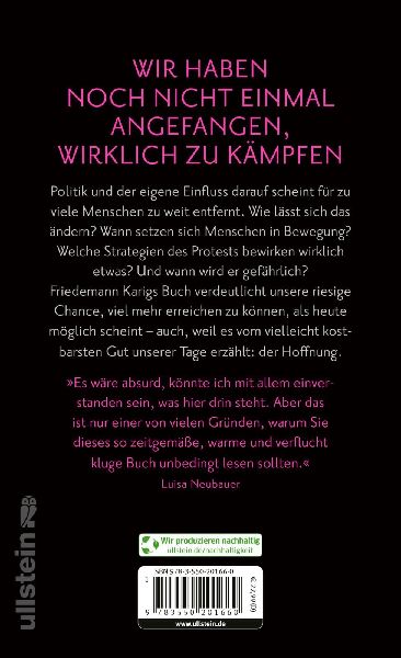 WIR HABEN NOCH NICHT EINMAL ANGEFANGEN, WIRKLICH ZU KÄMPFENPolitik und der eigene Einfluss darauf scheint für zu viele Menschen zu weit entfernt. Wie lässt sich das ändern? Wann setzen sich Menschen in Bewegung? Welche Strategien des Protests bewirken wirklich etwas? Und wann wird er gefährlich?Friedemann Karigs Buch verdeutlicht unsere riesige Chance, viel mehr erreichen zu können, als heute möglich scheint - auch, weil es vom vielleicht kostbarsten Gut unserer Tage erzählt: der Hoffnung.'Es wäre absurd, könnte ich mit allem einverstanden sein, was hier drin steht. Aber das ist nur einer von vielen Gründen, warum Sie dieses so zeitgemäße, warme und verflucht kluge Buch unbedingt lesen sollten.'Luisa Neubauer (lib)