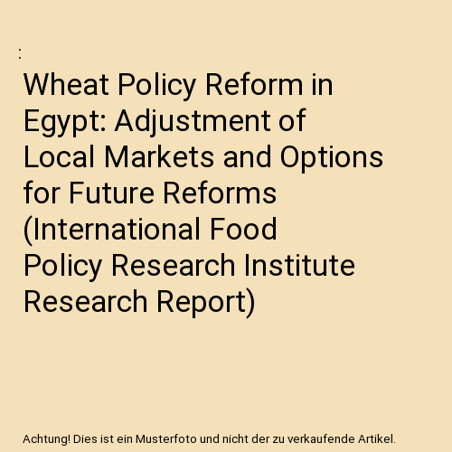 Wheat Policy Reform in Egypt: Adjustment of Local Markets and Options for Future Reforms (International Food Policy Research Institute Research Report)